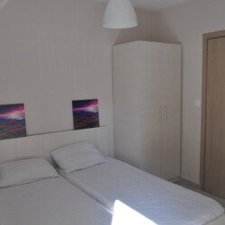 Četvorokrevetni apartman raspolaže spavaćom sobom sa dva singl ležaja i kuhinjskim delom u kome se nalazi francuskim ležaj, a koji sadrži rešo sa dve ringle, frižider, sudoperu i elemente sa osnovnim kuhinjskim inventarom. Kupatilo ima tuš kadu. Svaka prostorija ima zaseban ulaz. Između prostorija nema vrata.