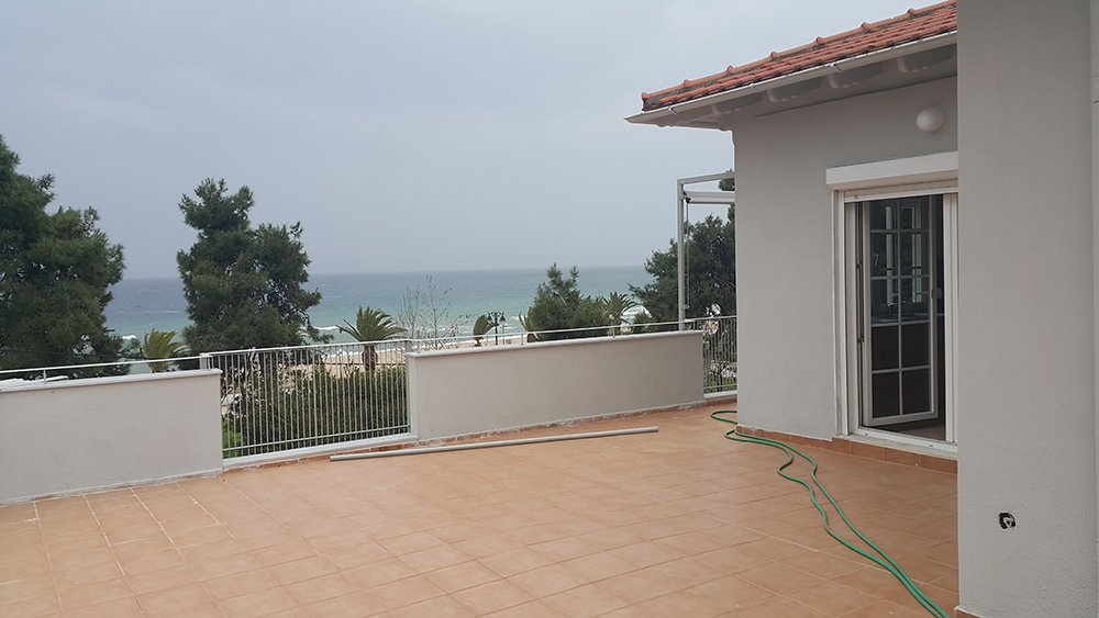 Vila Amos se nalazi na 20m od mora u najlepšem delu Nea Plaja odmah pored poznatog restorana Talasinos. Potpuno nova kuća se na prvom mestu odlikuje izuzetno prostranim studijima (33-35m2), apartmanima (36-44m2), duplexima (44-50m2) i komfort duplexima od 86m2. Smeštajne jedinice se nalaze u niskom prizemlju, prvom, drugom i trećem spratu, sve imaju SAT TV, klima uređaj čije je korišćenje uključeno u cenu kao i signal za besplatno korišćenje bežičnog interneta. Svi imaju prostrane terase od kojih neke imaju i pogled na more.