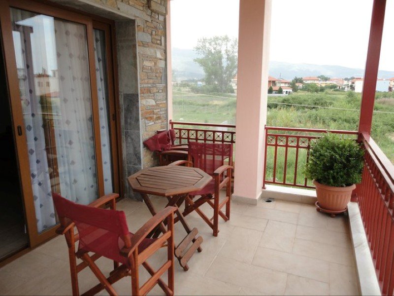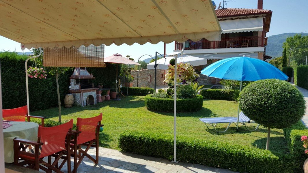 Nalazi se u mirnom delu Nea Vrasne u prelepom ambijentu, besprekorno uredjenom dvorištu, okruženom zelenilom. Bezbroj detalja prilikom uredjaja ove vile, na kojima vlasnici očigledno nisu štedeli, čini ovu vilu jednom od najluksuznijih i najlepših u Nea Vrasni. Ambijent dvorišta upotpunjuju nekoliko roštilja, zajedničke garniture za sedenje, sadržaj za decu… Studiji i duplex-apartmani, moderno opremljeni, će svakako učiniti vaš boravak prijatnim. Na nepunih 400m od vile se nalazi trg sa dosta sadržaja: igralište za decu, poslastičarnica, pekara, mesara, mini market… Ispred vile je uredjen parking prostor.