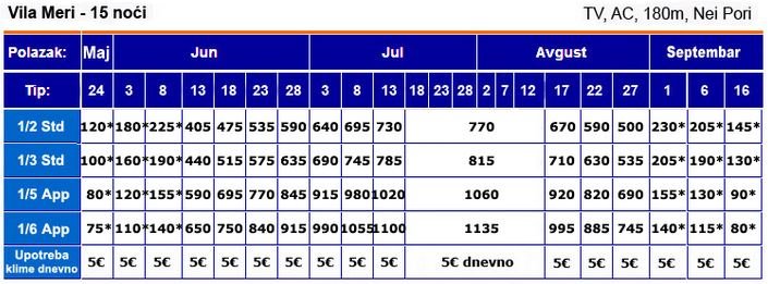 NAPOMENA: boravišna taksa 0.5 eura po danu po smeštajnoj jedinici nije uključena u cenu i plaća se u agenciji.