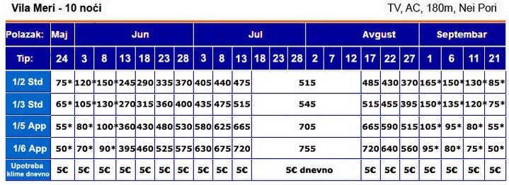 MERI, NEI PORI – CENOVNIK LETO 2022.