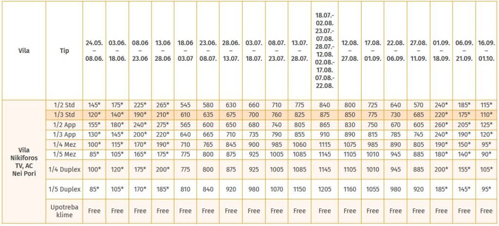 NIKIFOROS, NEI PORI – CENOVNIK LETO 2023.
