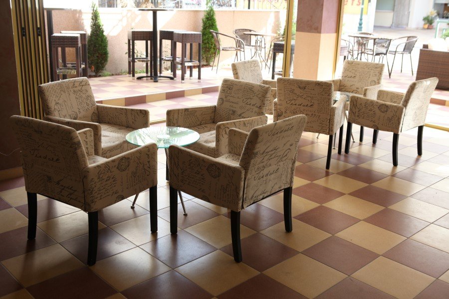 U prizemlju vile se nalazi bar sa salonom i recepcija. Dvorište vile je veoma lepo uređeno sa garniturama za sedenje, koje gosti mogu da koriste.