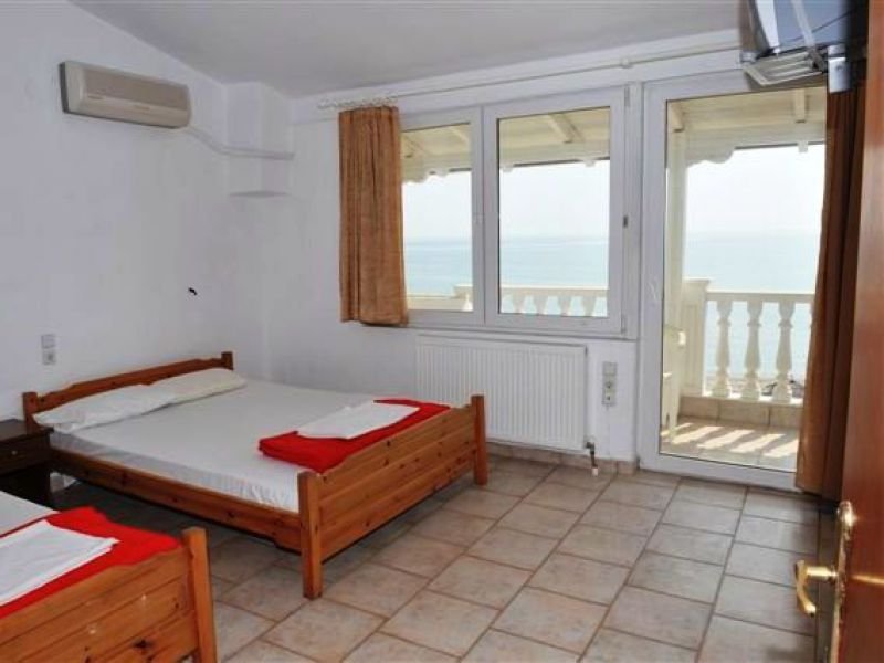 Zahvaljujući tome što se ova vila nalazi na samoj plaži, možemo da kažemo da ima idealnu poziciju i iz tog razloga je preporučujemo i izdvajamo iz ponude. Pravo je zadovoljstvo i potpuni ugodjaj uz prvu jutarnju kafu ili čašicu „ouza“, sedeti na nekoj od terasa koje imaju očaravajući frontalni pogled na more. U glavnoj zgradi vile nalaze se kompletno opremljeni apartmani i duplexi, od kojih većina ima frontalni pogled na more. U dvorištu iza glavne zgrade je depadans vile u kome se nalazi prizemni trokrevetni studio. Vila ima lepo uredjeno, popločano dvorište sa česmom i tušem. Zbog strukture smeštajnih jedinica, preporučujemo je za višečlane porodice kao i za veće društvo. U sklopu vile je beach-bar sa ležaljkama i suncobranima koje naše gosti uz konzumiranje pića mogu da koriste. Na oko 70m od vile se nalazi javni parking.