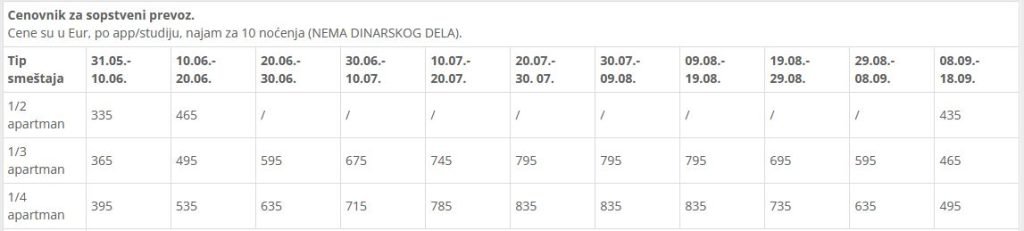VILA ZINOS PARALIJA, CENOVNIK LETO 2024.