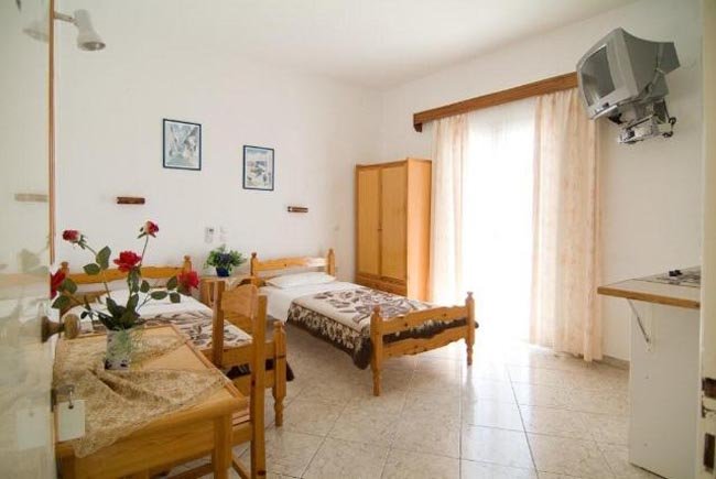 Smeštaj Avdikos: Kuća poseduje studija za dve osobe, a svi poseduju tuš wc, klima uređajem (uz doplatu na licu mesta), televizor, kuhinjicu – rešo sa dve ringle i neophodnim poszđem, i naravno ono najvažnije na letovanju balkon ili terasu. U sklopu vile Avdikos, postoji i internet slabog protoka, dostupan u periodu od juna meseca, do septembra.