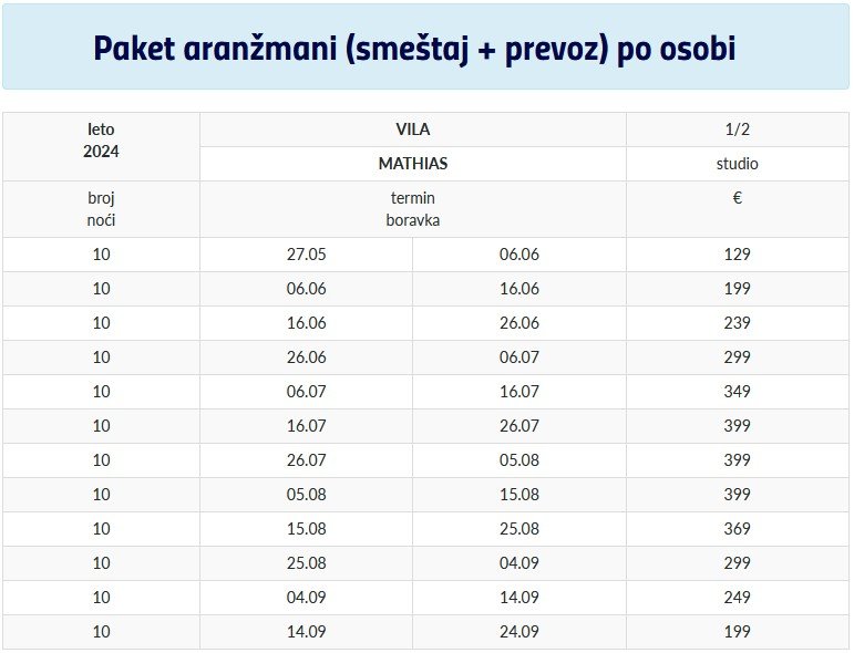 MATHIAS, PARGA – CENOVNIK LETO 2024.