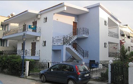 Smeštaj: Kuća poseduje studija za 2 osobe (strukture dva osnovna ležaja), od kojih neki imaju mogućnost jednog pomoćnog ležaja (fioka koja se izvlači iz osnovnog ležaja), opremljene TWC-om, TV-om, klima uređajem (uz doplatu na licu mesta), mini čajnom kuhinjom, balkonom ili terasom. U sklopu kuće postoji wifi (slabog protoka), dostupan u period jun-septembar.