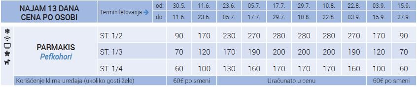 Cena po osobi za sopstveni prevoz na bazi 12 noći