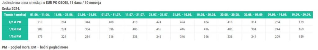 Boravak na bazi broja noćenja prema cenovniku Grčka leto 2024. u izabranom smeštaju na bazi odabrane usluge.