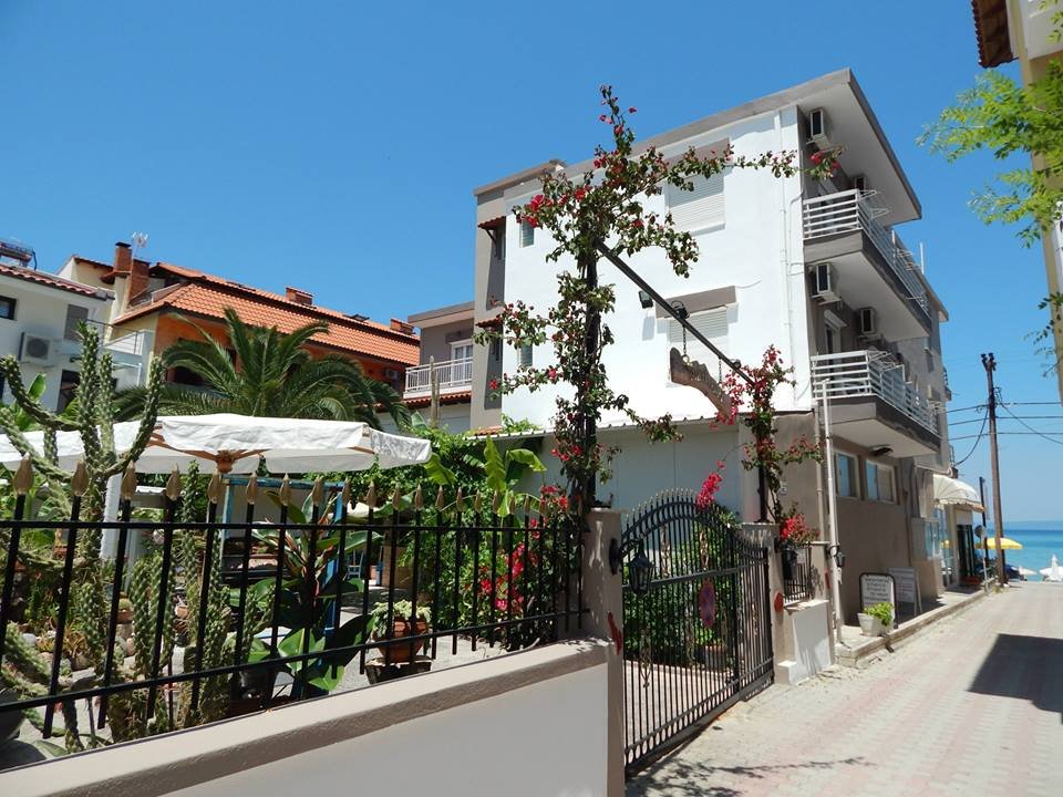 Vila Poseidonio se nalazi na sjajnoj lokaciji, u centru Pefkohorija na samoj plaži, uz šetalište. Vila raspolaže dvokrevetnim, trokrevetnim studijima i četvorokrevetnim apartmanimа, koji se nalaze na prvom i drugom spratu. Svi studiji i apartmani imaju terasu sa pogledom na more (pun ili bočan). U svakom studiju/apartmanu se nalazi TV, klima, opremljena kuhinja i kupatilo. Gostima je u vili na raspolaganju besplatan internet.