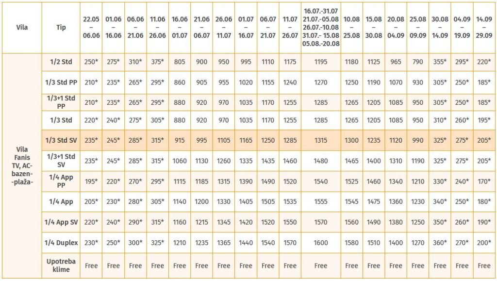 FANIS, POLIHRONO – CENOVNIK LETO 2023.