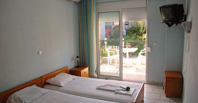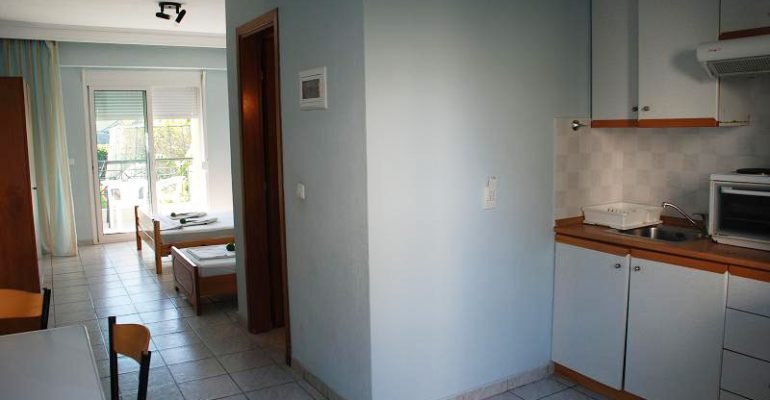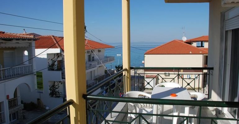 Vila Kostas nalazi se na 120 metara od plaže, u hladu mediteranskog rastinja. Sastoji se od prostranih i skromno opremljenih 1/4+1 dupleks mezoneta, smeštajnih jedinica na dva nivoa opremljenih u tradicionalnom grčkom stilu. Donji deo mezoneta čine kupatilo i kuhinjsko-trpezarijski deo (iz kojeg se izlazi na terasu) sa TV-om i jednim standardnim krevetom. Mini kuhinju čine manji frižider, rerna sa dve plotne, aspirator i osnovni pribor i posuđe. Gornji deo mezonete se sastoji od hodnika sa velikim plakarom i dve spavaće sobe. Jedna je sa francuskim krevetom a druga sa jednim standardnim i jednim zidanim krevetom specifičnih dimenzija (160x100cm)predviđenim za smeštaj dece do 7 godina. Obe sobe su opremljene klima uređajima koji su uključeni u cenu i imaju izlaz na balkon. Svi prozori u mezonetama imaju komarnike. Vila nema sopstveni parking. Vila (ne i svaka smeštajna jedinica posebno) poseduje sopstveni bežični internet sa jednim ruterom pa u skladu sa tim ne možemo garantovati jačinu signala.