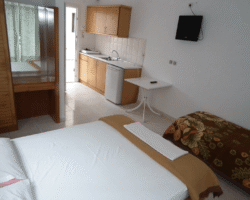 Vila Afroditi se nalazi u starom delu Sartija, na samo 30m od mora, u delu gde je ponuda plaže u Sartiju i najbogatija. Tu su brojni restorani, taverne, beach barovi, centar vodenih sportova. Studiji se nalaze u visokom prizemlju i na prvom spratu. Svi imaju SAT TV i klima uređaj čije se koriščenje doplaćuje.