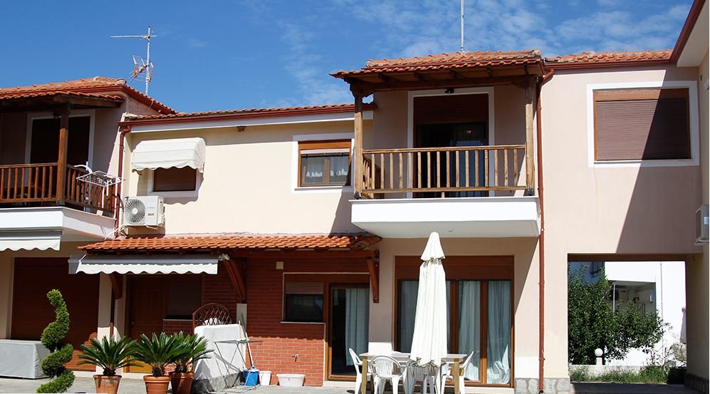 Mezonete Dioskuri se nalaze na 200m od plaže Paradeisos. Nisu u glavnom objektu kuće Dioskuri već se nalaze u kompleksu mezoneta koje su tipski gradjene gde su neke u privatnom vlasništvu, a neke nisu ni useljene. Mezonete su na dva nivoa. U donjem se nalazi kuhinja sa dnevnim boravkom i krevetom na rasklapanje za dve osobe, i WC. Na gornjem nivou se nalazi terasa, kupatilo sa WC-om i dve spavaće sobe. Svaka mezoneta ima svoje parking mesto.