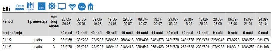 Vila Elli se nalazi u manjoj ulici na samo 20m od najlepšeg trga odakle polaze izletnički brodići i na oko deset minuta do glavne gradske plaže. U ponudi su trokrevetni studiji na prvom spratu. Svi imaju TV, signal za besplatno korišćenje bežičnog interneta i klima uređaj čije je korišćenje uključeno u cenu.