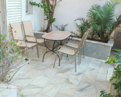 Vila Fotis se nalazi u starom delu Sartija u blizini crkve na 260m od mora. Studiji za 2-3 osobe se nalaze na prvom spratu, dvokrevetni studio na drugom spratu, a duplex i studio za 4 osobe u prizemlju. Terase studija br.1 i 2 imaju pogled na more, a studija br.3, 4 i 7 na dvorište. Svi studiji imaju SAT TV, signal za bežični internet i klima uređaj čije se korišćenje doplaćuje.