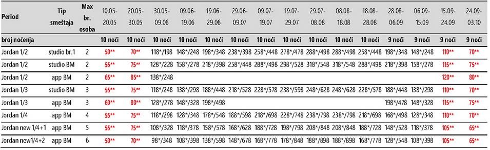 Cena sa „zvezdicom“ * predstavlja cenu paket aranžmana (smeštaj+prevoz) po osobi.