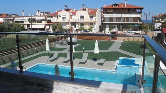 Potpuno nova luksuzno uređena kuća Laura, sa bazenom i prostranim dvorištem, nalazi se na 80m od plaže u novom delu Sartija odmah preko puta poznate kuće Ilias. Studiji se nalaze u prizemlju, dok su na spratu tzv. apartmani sa galerijom. U donjem nivou se nalazi trosed na rasklapanje za dve osobe, dok se na galeriji nalazi francuski ležaj. Svi imaju SAT TV, klima uređaj čiji je korišćenje uključeno u cenu kao i signal za besplatno korišćenje bežičnog interneta. Dvorište je prostrano sa bazenom za odrasle (11*6) i bazenom za manju decu.