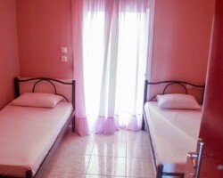 Kuća Lena se nalazi na 250m od mora i oko 70m od glavnog trga, u mirnom delu starog Sartija odmah preko puta kuće Fotini i kuće Olga. Na prvom spratu se nalazi mezoneta za do šest osoba koja u donjem nivou ima dnevni boravak i wc, a na gornjem nivou kupatilo i dve odvojene spavaće sobe. Kuća ima TV kao i klima uređaj čije se korišćenje posebno doplaćuje. Gostima je na raspolaganju i roštilj u dvorištu kuće.