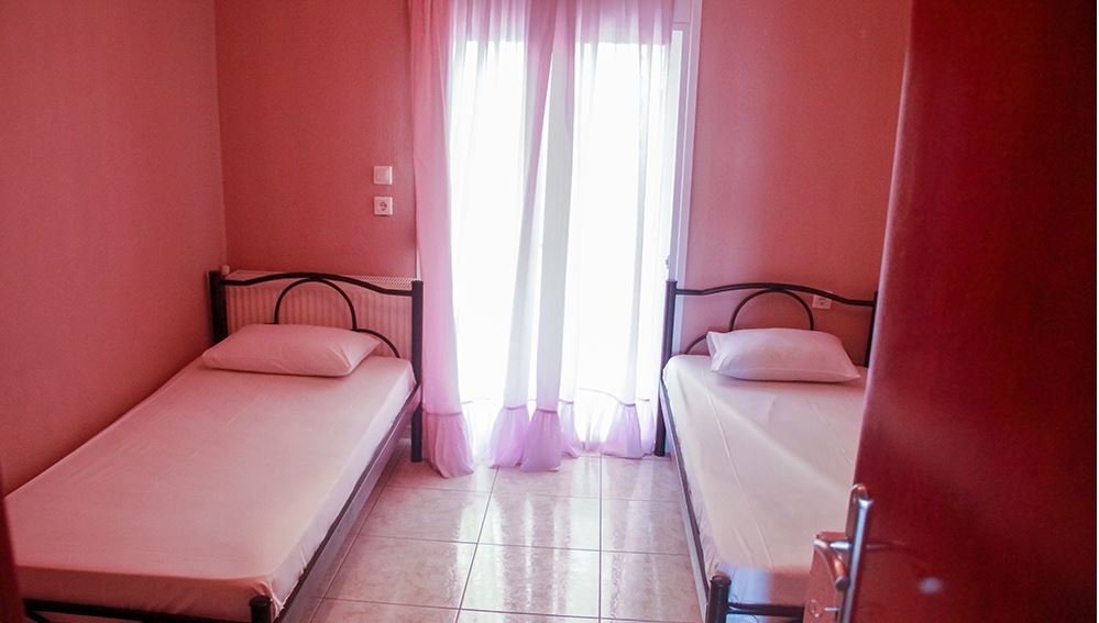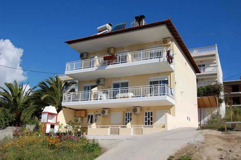 Kuća Lena se nalazi na 250m od mora i oko 70m od glavnog trga, u mirnom delu starog Sartija odmah preko puta kuće Fotini i kuće Olga. Na prvom spratu se nalazi mezoneta za do šest osoba koja u donjem nivou ima dnevni boravak i wc, a na gornjem nivou kupatilo i dve odvojene spavaće sobe. Kuća ima TV kao i klima uređaj čije se korišćenje posebno doplaćuje. Gostima je na raspolaganju i roštilj u dvorištu kuće.