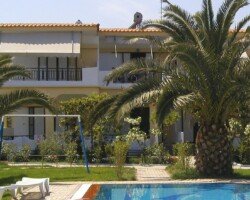 Vila Mihalis se nalazi na oko 390m od mora. Levi blok kompleksa je kuća Mihalis, koja pruža mogučnost korišćenja uređenog dvorišta sa roštiljem i bazenom sa ležaljkama, kao i parking prostora. Studiji i apartmani su smešteni na prizemlju i 1. spratu. Svi imaju SAT TV, signal za besplatan WiFi i klima uređaj čije se korišćenje doplaćuje. Terase imaju pogled na bazen ili na susedne vinograde i bašte