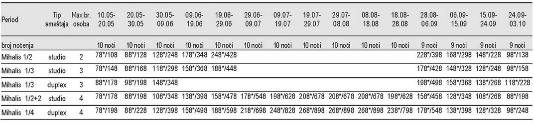Cena sa „zvezdicom“ * predstavlja cenu paket aranžmana (smeštaj+prevoz) po osobi.