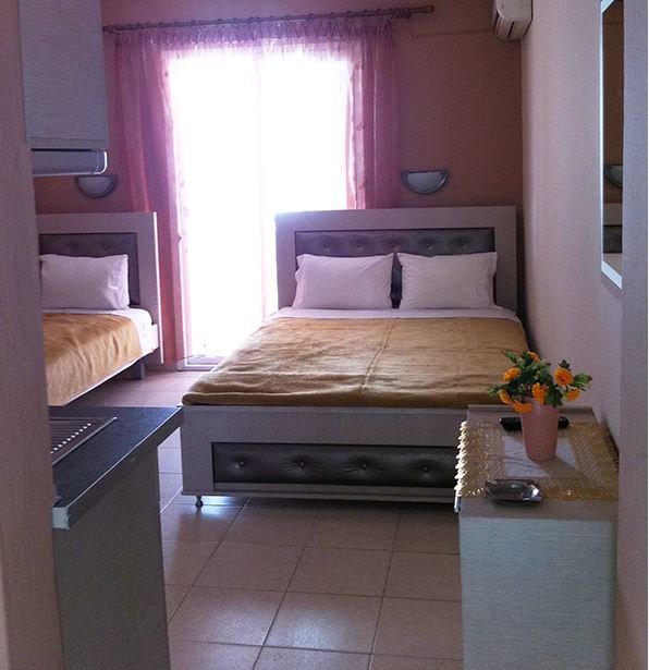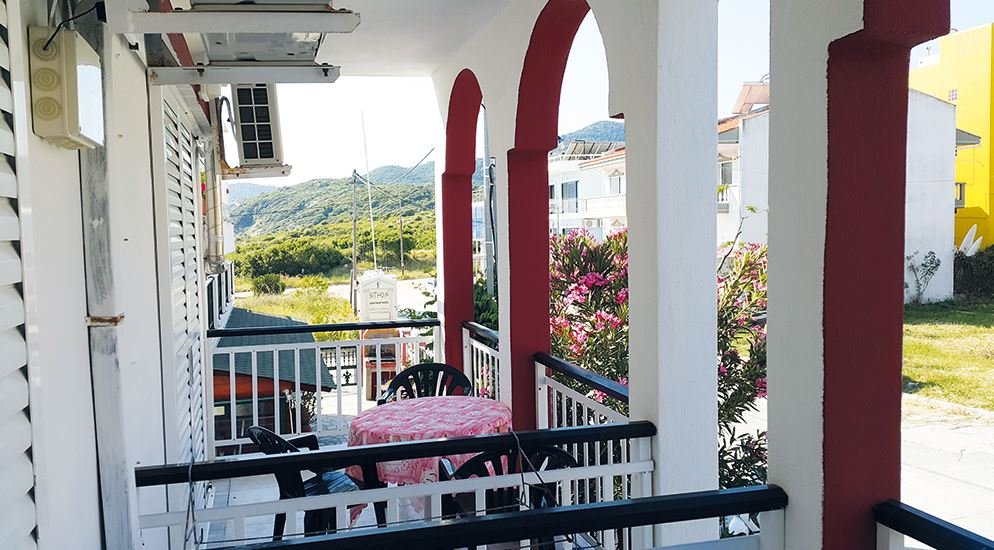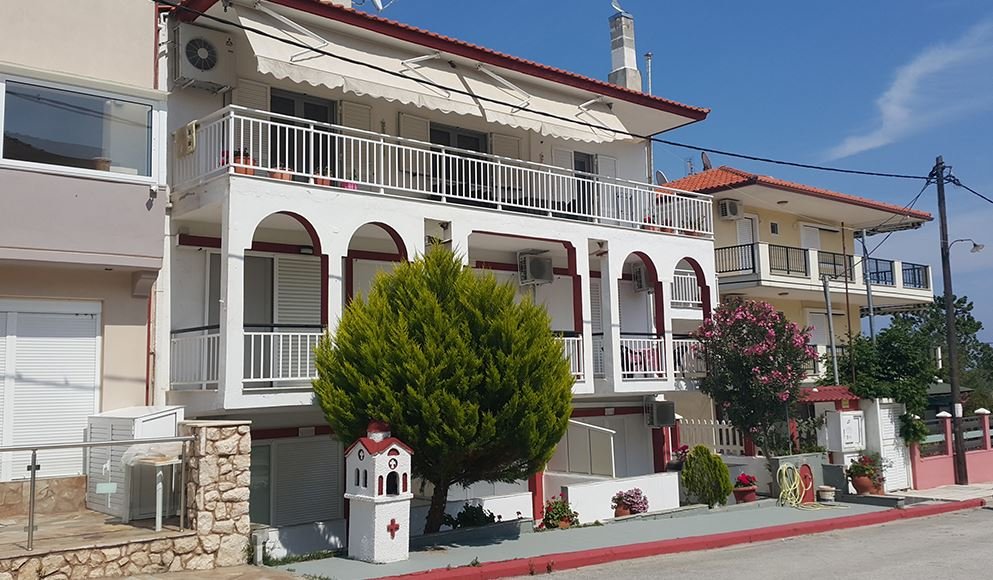 Vila Pirofani New se nalazi na 50m od plaže u novom delu Sartija (20 minuta lagane šetnje od centra) koji se naziva Sarti Beach, posebno popularan kod porodica sa malom decom zbog sitnog peska i dugog plićaka. U ponudi je kompletno renovirani prvi sprat zbog čega je kuća i dobila sufiks u nazivu i postala Pirofani New. Svi imaju SAT TV, klima uređaj čije je korišćenje uključeno u cenu, kao i signal za besplatno korišćenje bežičnog interneta. Dvorište sa roštiljem u hladovini je idealno mesto za druženje.