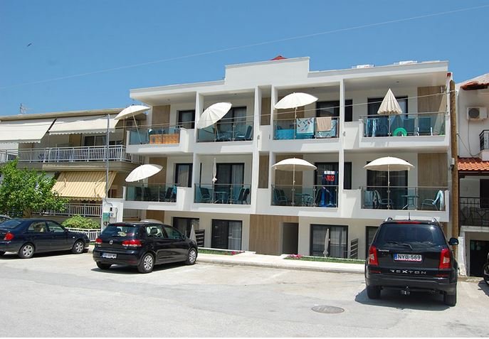 Novija kuća Sarti Holidays nalazi se u Sarti beach-u, na oko 50m od peščane plaže, na dvadesetak minuta lagane šetnje od centra. U ponudi su studiji za dve do četiri osobe u niskom prizemlju, prvom i drugom spratu. Svi imaju SAT TV, klima uređaj čije je korišćenje uključeno u cenu i kablovski i bežični internet što ovu kuću čini najpouzdanijom po pitanju internet signala. Organizovano je čišćenje i zamena peškira i posteljina dva puta tokom boravka. Studiji sa prednje strane zgrade imaju pogled ka brdu. Studiji sa zadnje strane zgrade imaju pogled izmedju zgrada i nalaze se u prizemlju, na prvom i drugom spratu. Studiji u prizemlju, s obzirom da nisu ispod nivoa zemlje, se prodaju po redovnim cenama kao i ostale sobe na spratu. Sobe sa oznakom UT se nalaze na prvom i drugom spratu. Cena nije snižena zbog ulaza preko terase, već zbog orijentacije terase koja gleda ka svetlarniku kuće, te gosti imaju smanjenu privatnost i lošiji pogled sa terase. Navedene terase NISU prolazne. Studiji sa oznakom DM (107,207) imaju lep pogled na more izmedju zgrada. Po istoj ceni su u ponudi i studiji sa oznakom garden (001,006) koji se nalaze u prizemlju i osim terase imaju svoje malo izdvojeno travnato dvorište (oko 15m2) sa ljuljaškom.
