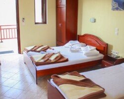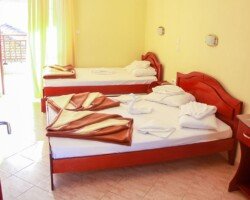 Vila Sartios se nalazi na samo 180m od najlepše uređenog dela plaže u Sartiju i na 70m od trga. U ponudi su dvokrevetni, trokrevetni i četvorokrevetni studiji sa pomoćnim ležajem. Svi studiji imaju SAT TV, klima uređaj čije se korišćenje posebno doplaćuje kao i signal za besplatno korišćenje bežičnog interneta. Novi studiji u niskom prizemlju imaju besplatno korišćenje klima uređaja u julu i avgustu.
