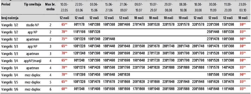 Cena sa „zvezdicom“ * predstavlja cenu paket aranžmana (smeštaj+prevoz) po osobi.