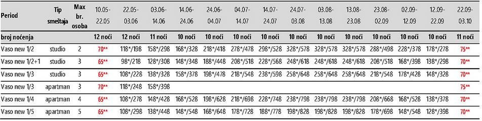 Cena bez * predstavlja cenu najma smeštaja za navedeni broj osoba.