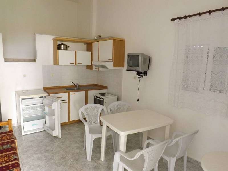 Peškiri, toalet papir i sapun nisu sastavni deo smeštajne jedinice. Apartmani na prvom i drugom spratu raspolažu sa ulaznom terasom i terasom sa bočnim pogledom na more. Apartmani u prizemlju imaju samo ulaznu terasu. Smeštajne jedinice su klimatizovane i imaju TV sa grčkim kanalima. U sastavu smeštajnog objekta nalaze se kafić – prodavnica u kojoj se može kupiti voda, sokovi, hleb, pecivo. U bašti kafića se nalazi i TV prijemnik sa srpskim kanalima i gosti mogu koristiti internet wireless (za čiji kvaliet ne odgovaramo). Smeštajni objekat nema obezbeđeno parking mesto.