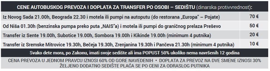 POLASCI I CENE AUTOBUSKOG PREVOZA PO OSOBI / SEDIŠTU