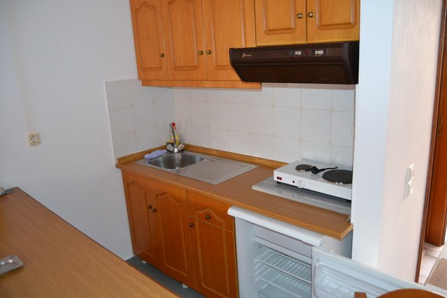 St 03: smešten je u prizemlju, poseduje francuski krevet i kauč na razvlačenje, kuhinjski deo (frižider, rešo sa dve ringle, posuđe i pribor za odgovarajući broj osoba), kupatilo sa tuš kadom i balkon sa garniturom za sedenje. Korišćenje klime je u ceni.