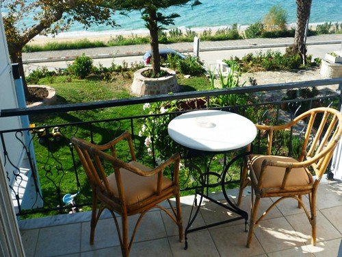 Vila Karnagio je porodična kuća smeštena na samoj obali mora u mestu Vrachos. Vila poseduje dvokrevetne i trokrevetne studije i četvorokrevetni dupleks, koji imaju direktan pogled na more. Studiji / dupleks u svom sastavu imaju kuhinju opremljenu posuđem, kupatilo, TV, AC – 5 eura/dan), terasu. Ispred kuće se nalazi prelepo dvorište, puno cveća, odakle gosti vila Karnagio mogu da uživaju u prelepom pogledu na Jonsko more. Studiji se nalaze u prizemlju i na prvom spratu a dupleks na prvom spratu.