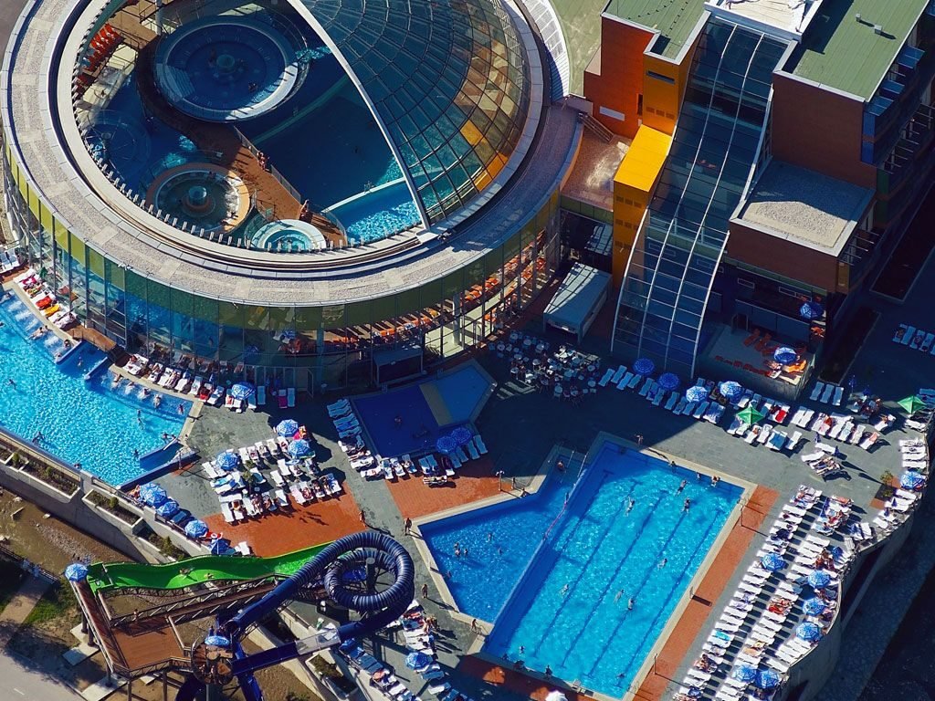 Novi wellness hotel, smešten u predivnom ambijentu, predstavlja kombinaciju tradicije i najmodernijih spa rituala u jednom od najboljih spa centara u ovom delu Evrope. Iz wellness ponude izdvajamo 2200 m2 vodenih površina sa temperaturom vode 30-34 C u otvorenim i zatvorenim bazenima.