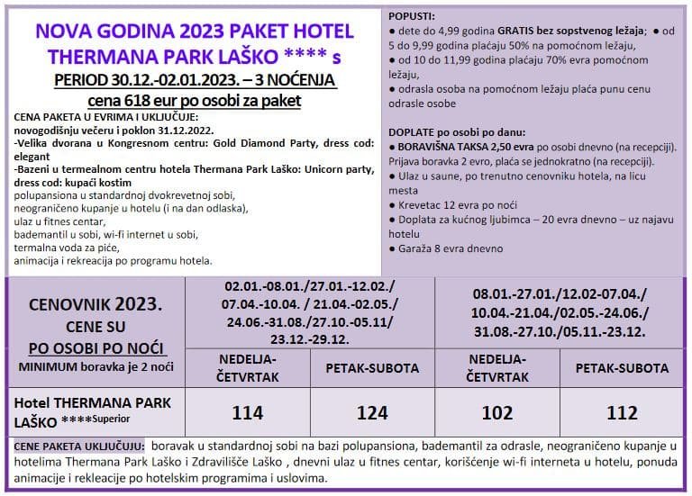 Terme Laško, sa svojim pažljivo kreiranim programima, predstavljaju idealan izbor za odmor i beg od stresa i svakodnevnog tempa života. Misteriozna snaga termalnih izvora bila je poznata još u rimsko doba, a tokom godina Laško se razvilo u jedan od najsavremenijih centara zdravstvenog i wellness turizma u Sloveniji. Danas Terme Laško pored klasičnih terapeutskih tretmana pružaju i najmodernije wellness i spa usluge i takođe značajno utiču na uspostavljanje energetske ravnoteže u organizmu.