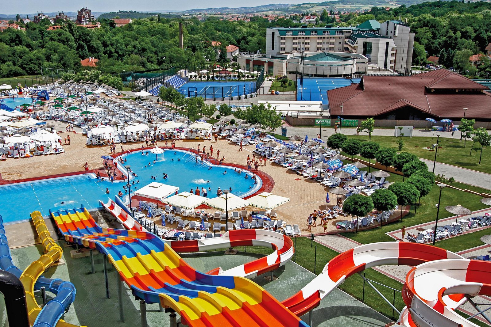 Ovaj prestižni hotelsko-turistički kompleks će svoje goste očarati skladnom arhitekturom, modernim enterijerom i najvišim nivoom usluge i sadržaja iz kog posebno ističemo wellness centar sa deset bazena sa preko 1000m2 vodenog ogledala sa prirodnom, lekovitom, mineralnom vodom, prečišćenom najsavremenijom tehnologijom. Posebnu celinu čini veliki aqua park sa tri bazena, dvanaest slajdova za odrasle, tri slajda za decu i mnoštvom atrakcija.